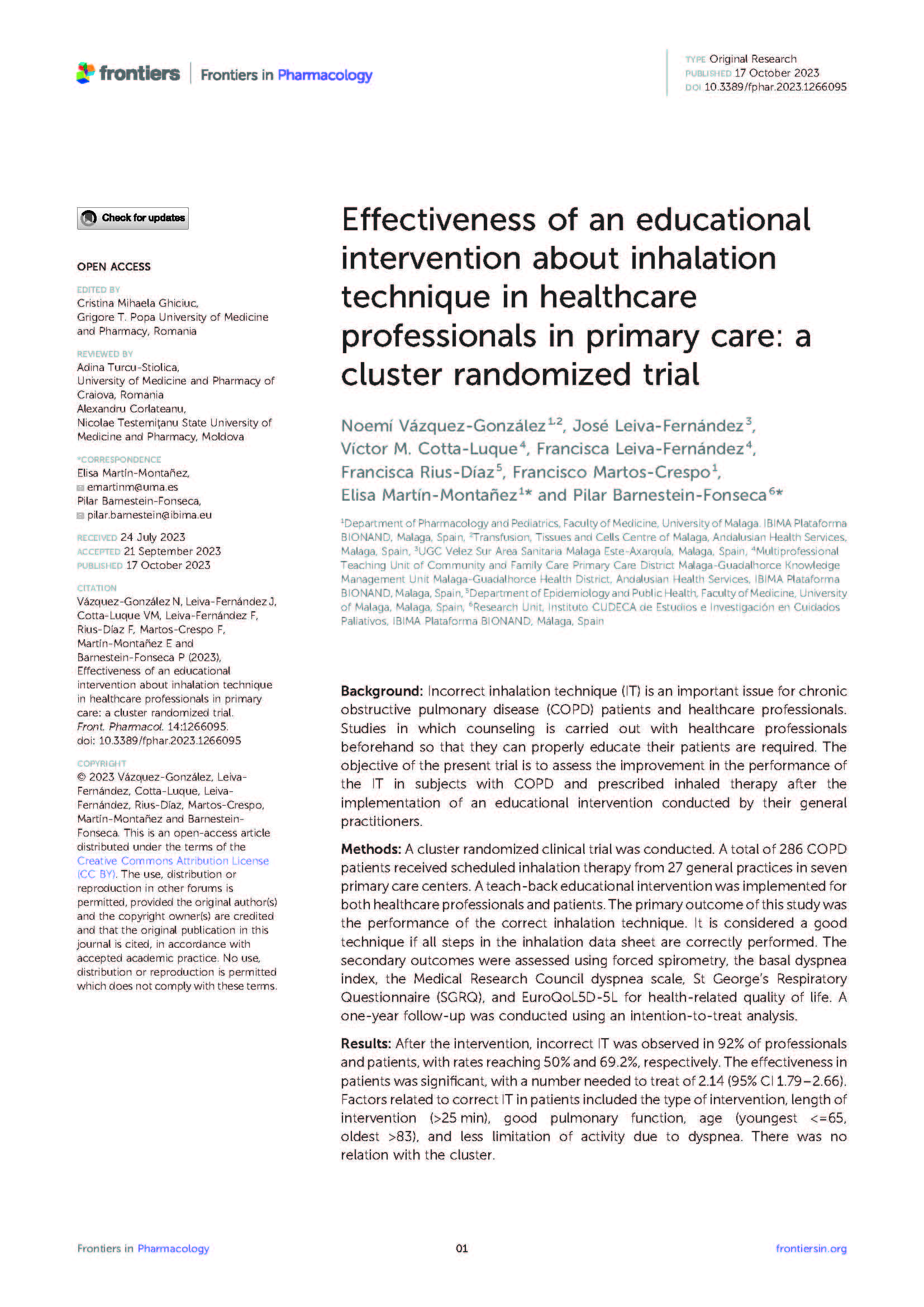 Effectiveness of an educational intervention about inhalation technique in healthcare professionals in primary care: a cluster randomized trial