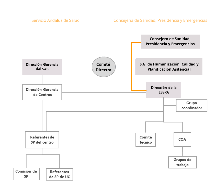La Consejería de Salud y Consumo de Andalucía impulsa y promueve la Seguridad del Paciente en los centros del Sistema Sanitario Público de Andalucía. La Estrategia para la Seguridad del Paciente (ESSPA) está liderada por la Secretaría General de Planificación Asistencial y Consumo y, a través de la Dirección de la misma, siendo responsable de su despliegue, supervisión y evaluación.